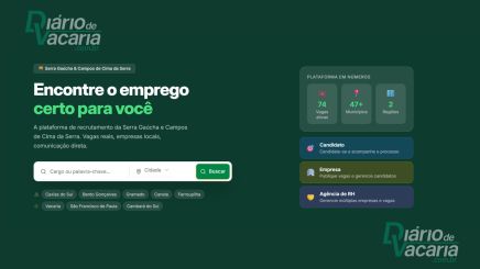 O Diário de Vacaria promove através da sua página o sistema Vagas nos Campos de Cima da Serra.Uma ferramenta criada pelo Diário de Vacaria para conectar pessoas interessadas em trabalhar e empresas que estão procurando candidatos.