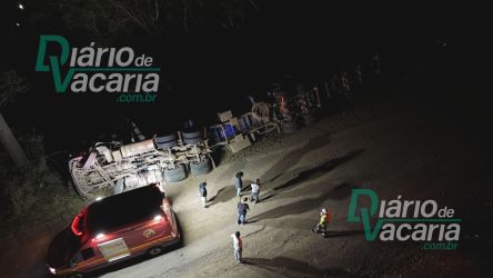 Caminhão tomba em curva da BR-116 em Vacaria, mata filha e companheira do condutor